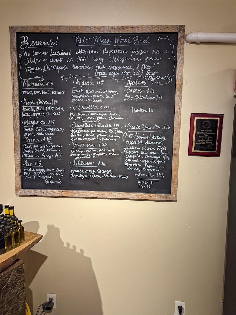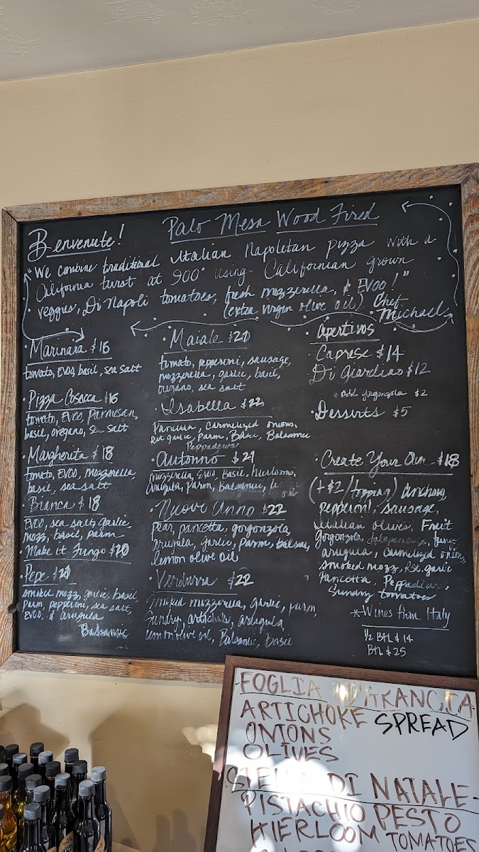 Overall, the menu at Palo Mesa Wood Fired offers a thoughtfully curated selection that highlights simplicity, freshness, and balance, making it easy to appreciate the restaurant’s culinary direction. From the start, the salad offerings such as Antipasto Insalata, Caprese Salad, and InsalataFrutta Insalata provide a light yet flavorful foundation, showcasing fresh ingredients and classic combinations that prepare the palate without overwhelming it. The pizza selection is clearly the heart of the menu, with options like Maiale, Autonno, MargheritaThe Mama, Pizza Cosacca, and Margherita reflecting a strong focus on traditional wood-fired techniques and well-balanced toppings. Each pizza feels distinct while staying true to a rustic, authentic style that emphasizes quality over excess. To round out the experience, the dessert choices-Magic Brownie, Limoncello, and Tiramisu-offer satisfying finishes, ranging from rich and indulgent to light and refreshing. Beverage options such as Squirt, Pepsi, Sparkling WaterFlavored Sparkle Water, and RootBeer keep things simple and approachable, while the availability of bottled items like Bottle Of Lemon Olive Oil, Bottle Of Balsamic, Side Balsamic, and Side Lemon Olive Oil adds a thoughtful touch for guests who want to extend the flavors beyond the table. Taken as a whole, the menu feels cohesive and well-considered, serving as a strong conclusion to the dining experience by reinforcing Palo Mesa Wood Fired’s commitment to classic flavors, high-quality ingredients, and a casual yet refined approach to food.